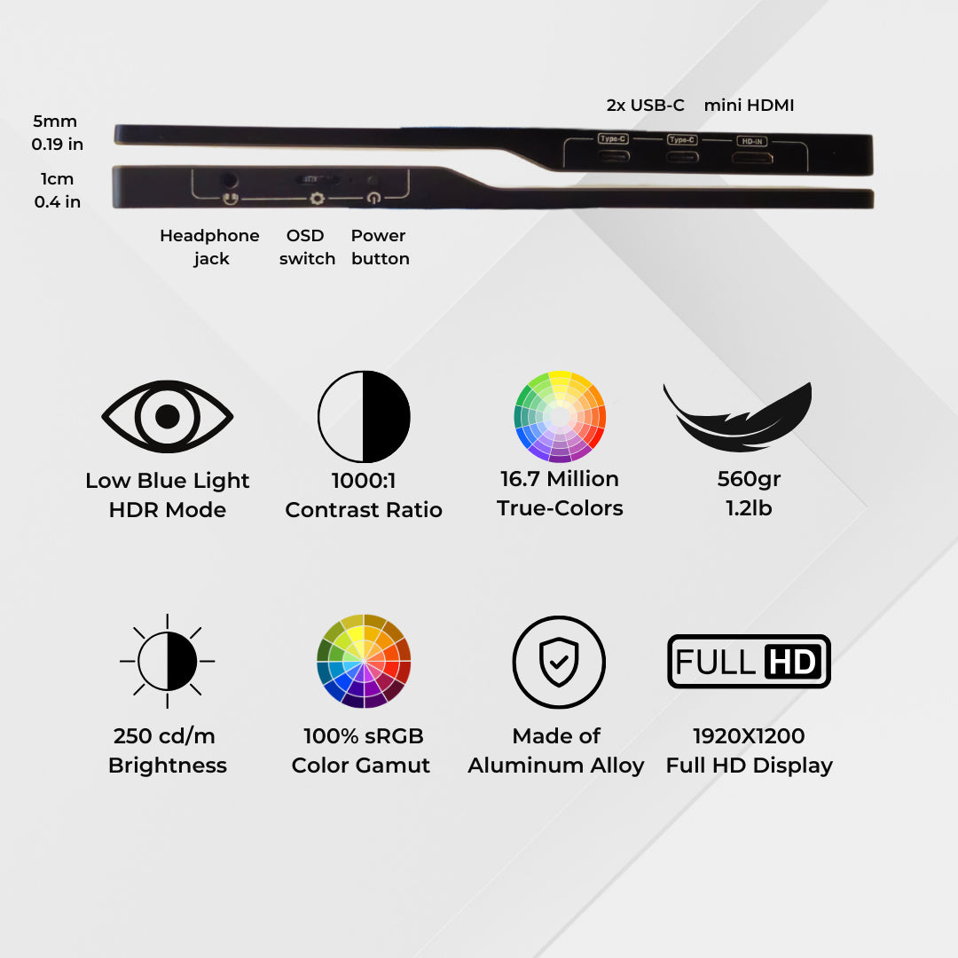 Portio P-14 Ultra-Light Portable Monitor | 14'' FHD