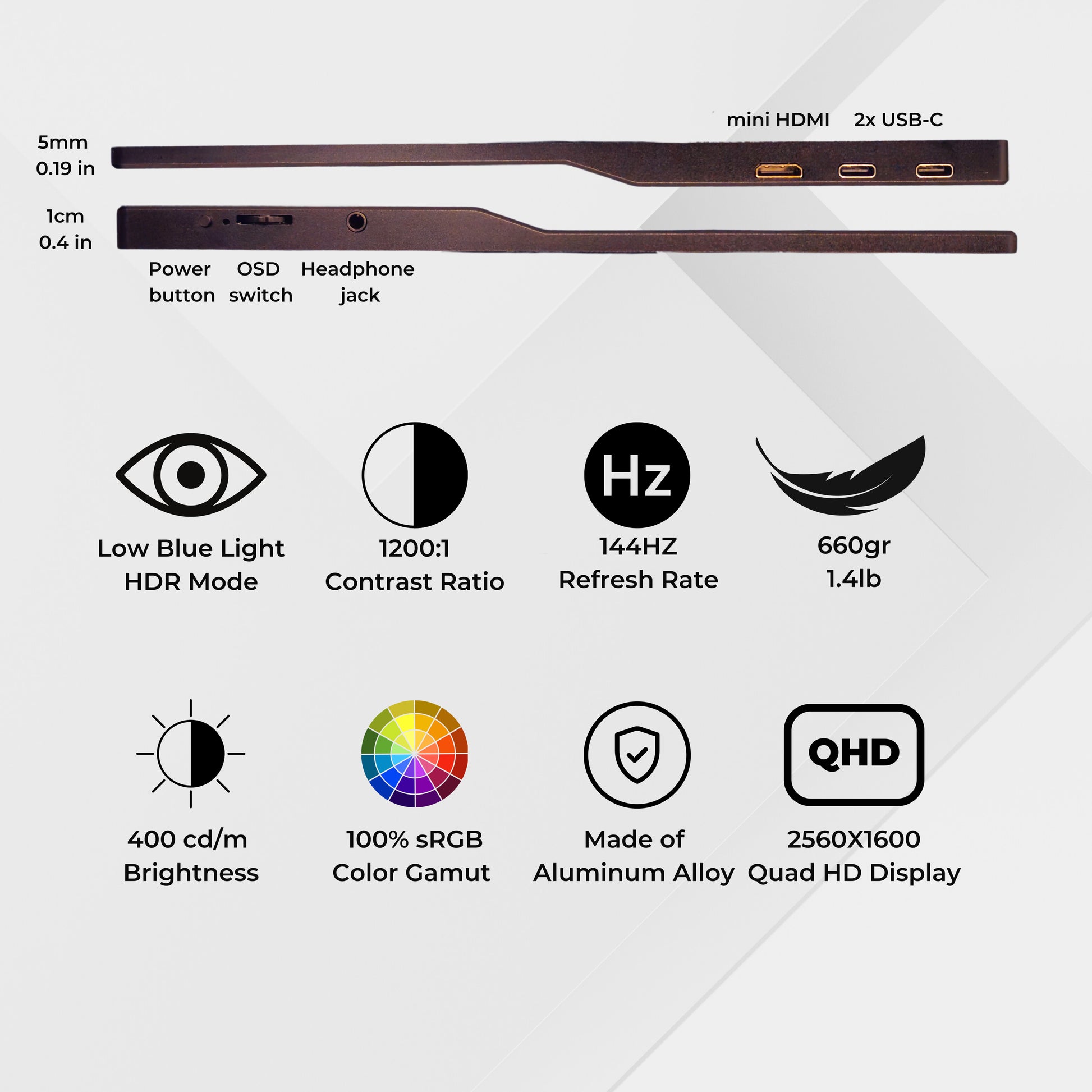 Portio Q-16 Ultra-Light Portable Monitor | 16'' QHD